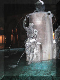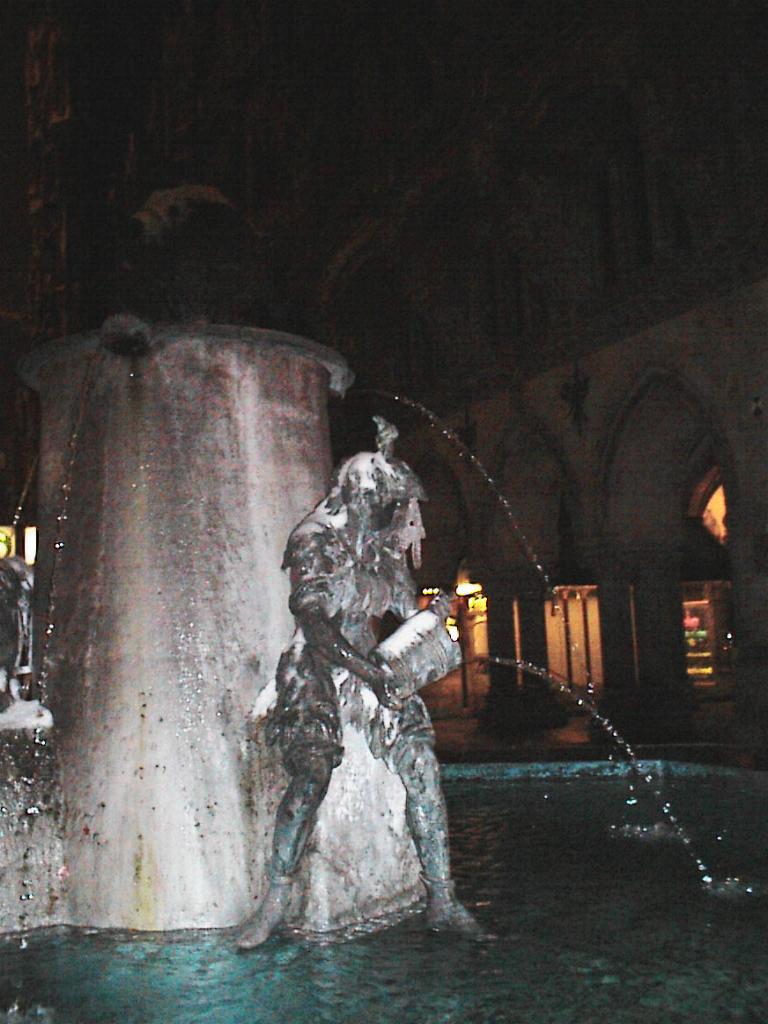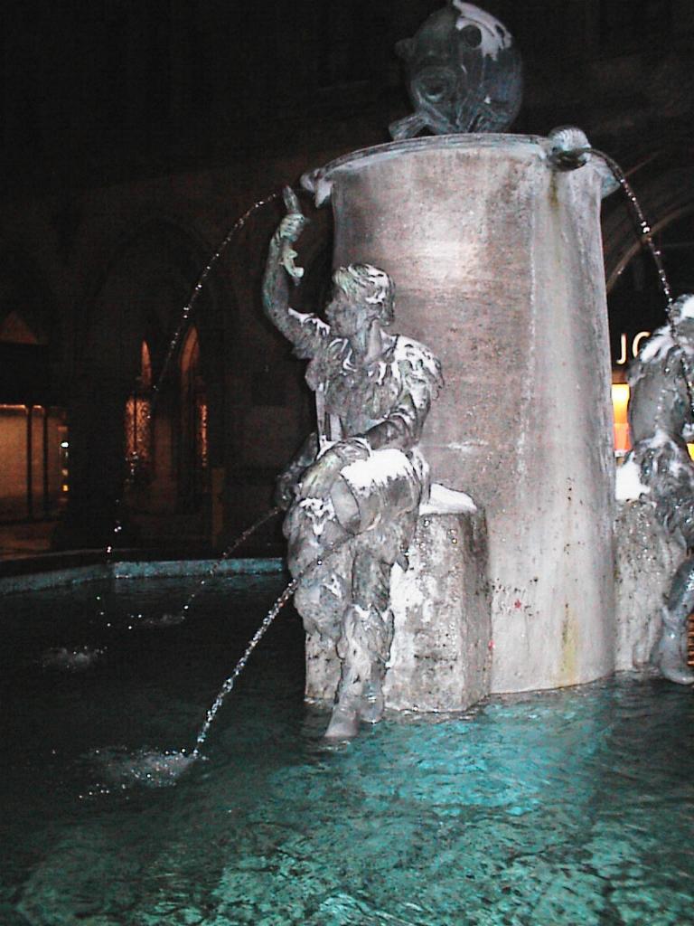 Fountains flow unmindful of the temperature. In front of the German
